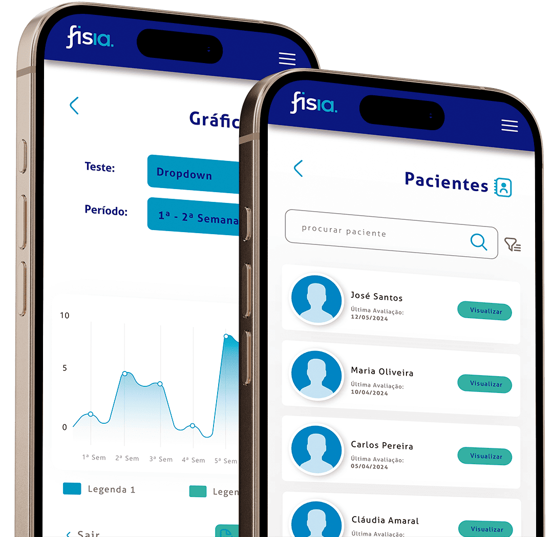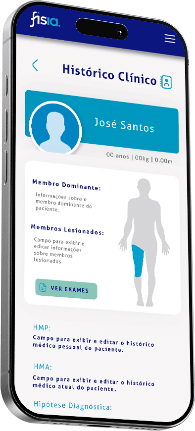 Com navegação fluida e interface intuitiva, o FisIA foi pensado para facilitar o seu atendimento clínico. Avalie, gere laudos e acompanhe a evolução do paciente direto do seu celular.